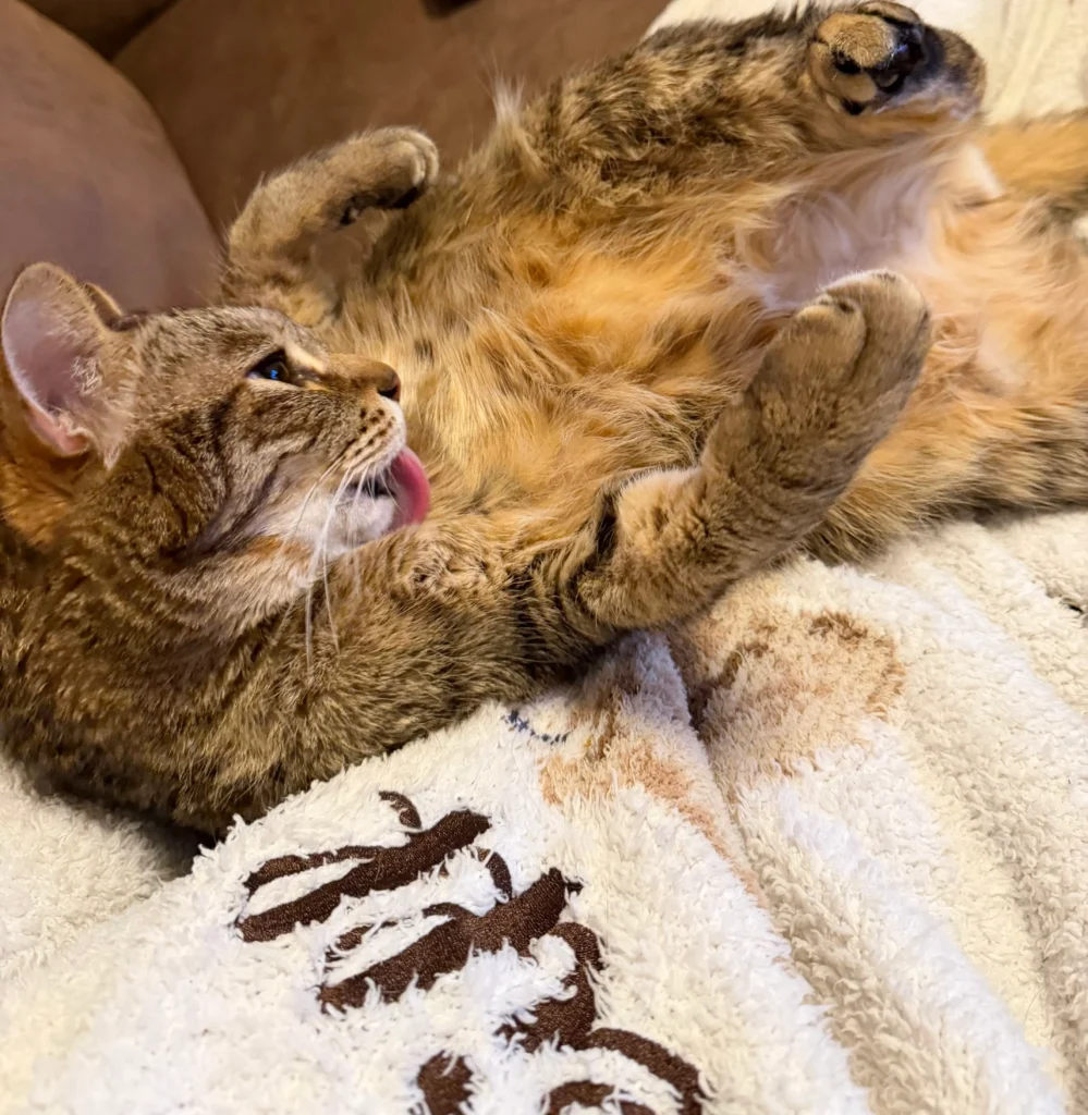 おかーさんの上でテレビを見るふわふわとろとろのぼく。